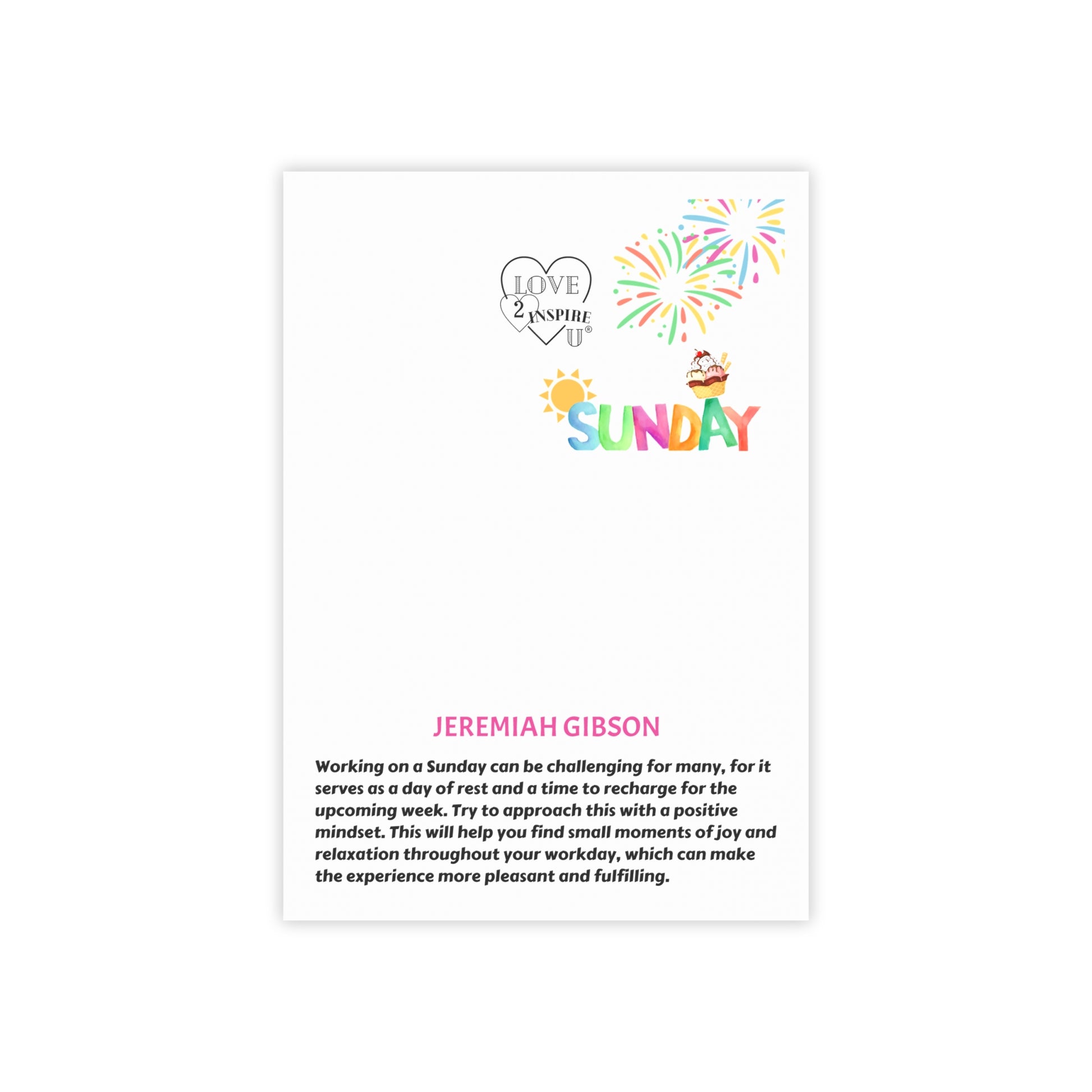 Working on a Sunday can be challenging for many, for it serves as a day of rest and a time to recharge for the upcoming week. Try to approach this with a positive mindset. This will help you find small moments of joy and relaxation throughout your workday, which can make the experience more pleasant and fulfilling.
